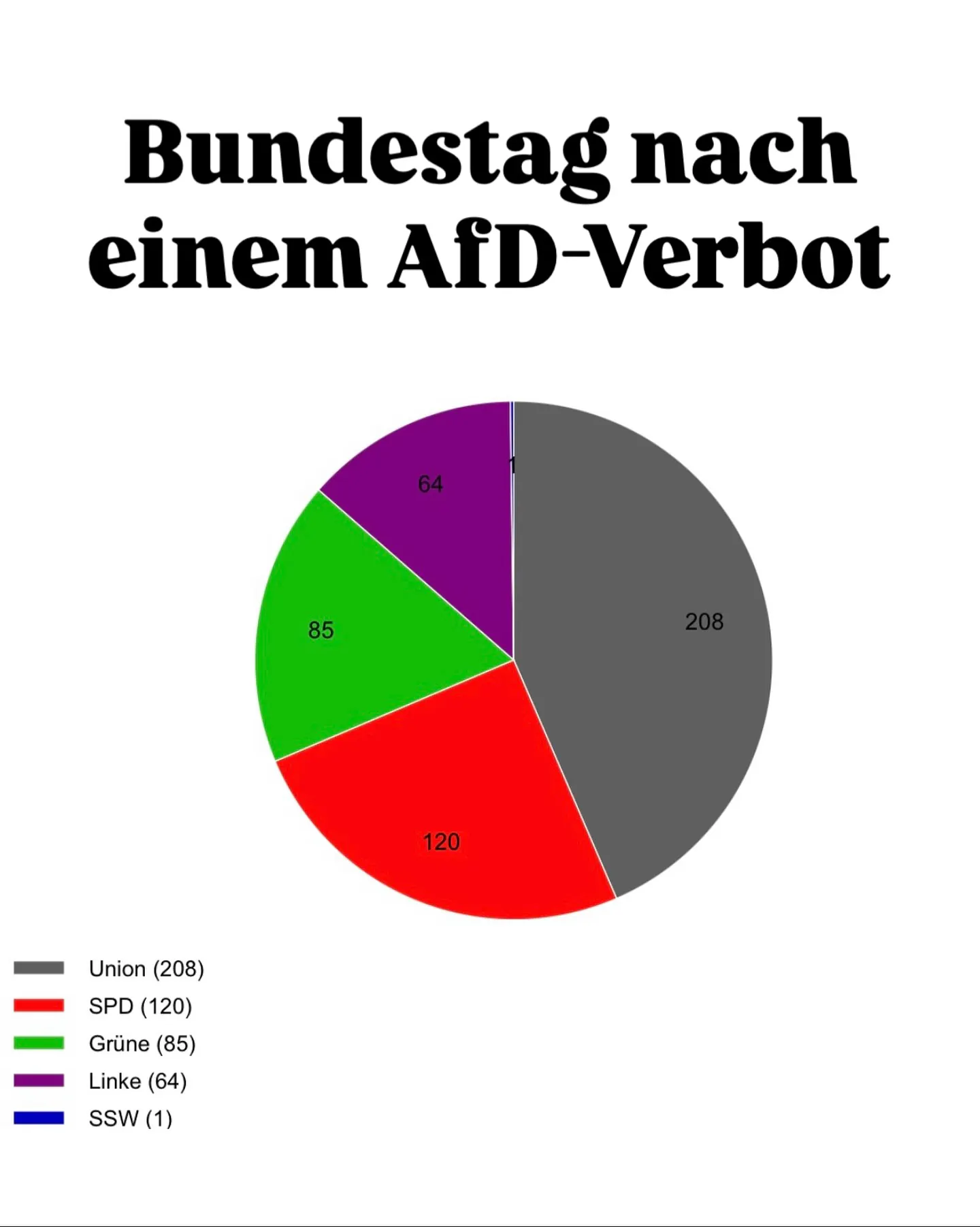 Ein Verbot der AfD hätte ein Verschieben der Mehrheiten im Bundestag zu folge. Eine Rot-Rot-Grüne Mehrheit wäre möglich und die CDU fürchtet womöglich, dass die SPD die aktuelle Regierung verlässt, um ein Bündnis links der Mitte zu schmieden.