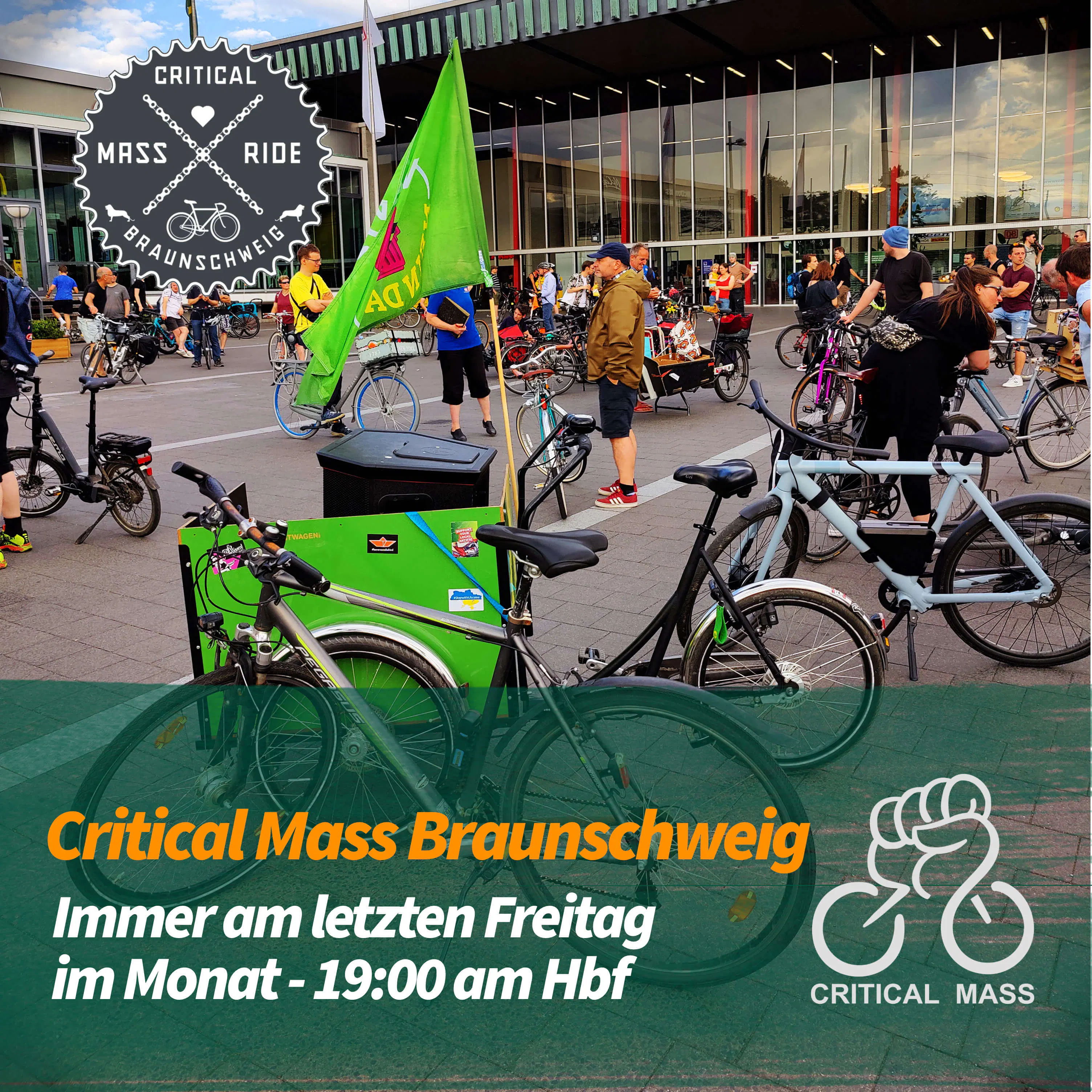 Die Critical Mass ist eine weltweit stattfindende Aktion, bei der sich eine große Gruppe von Fahrradfahrer*innen an einem Treffpunkt in der Stadt trifft um gemeinsam eine Radtour durch die Stadt zu unternehmen. Dabei steht natürlich nicht das Sightseeing im Vordergrund, sondern das Aufzeigen der systematischen Benachteiligung nicht-motorisierter Verkehrsteilnehmer*innen - nicht nur durch die Dominanz der Autofahrer*innen, sondern auch durch die Benachteiligung bei der Verkehrsinfrastruktur (schlechte Radwege, ...). Es soll gezeigt werden, dass Radfahrer*innen ein fester und wichtiger Bestandteil der Straßenverkehrs sind.