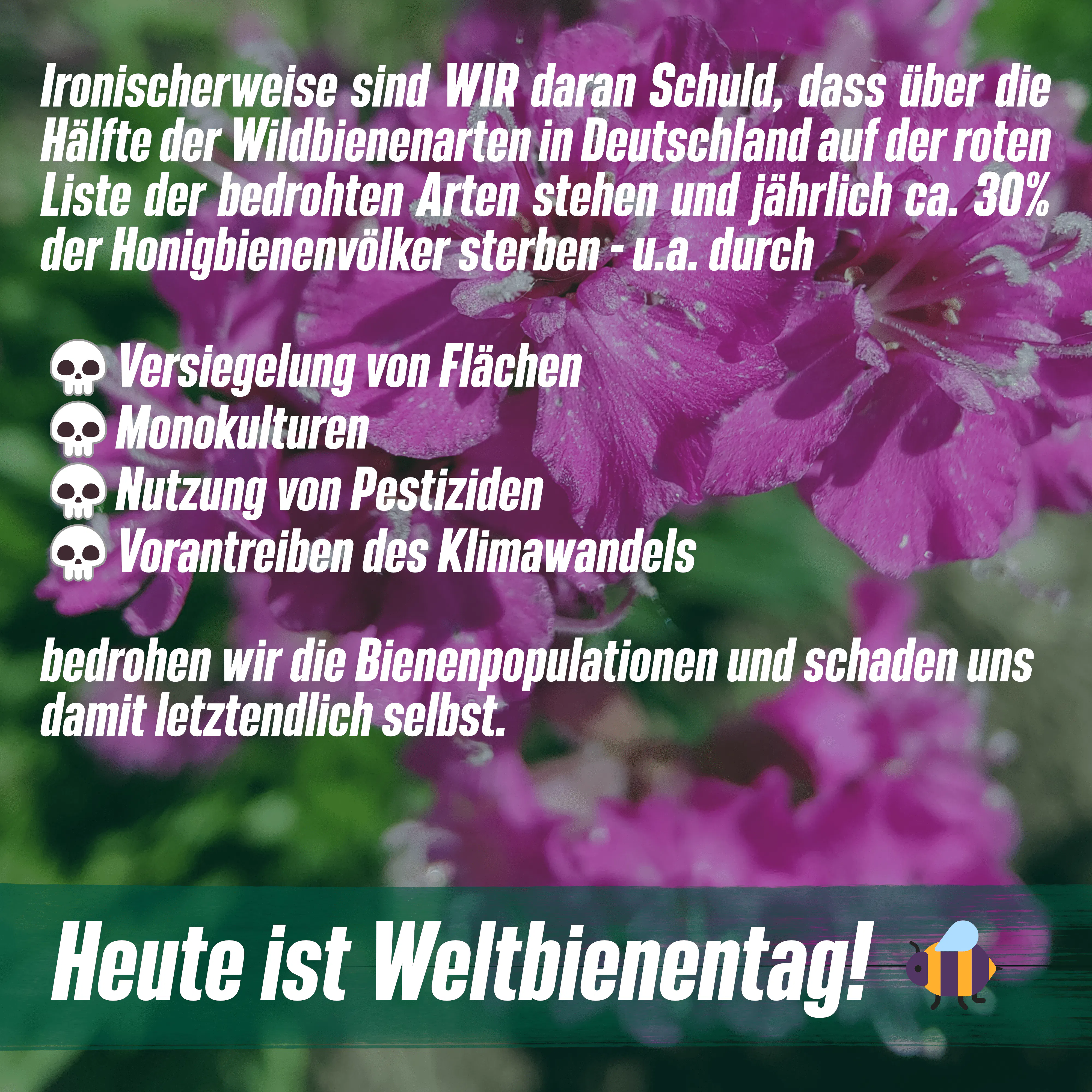 Ironischerweise sind WIR daran Schuld, dass über die Hälfte der Wildbienenarten in Deutschland auf der roten Liste der bedrohten Arten stehen und jährlich